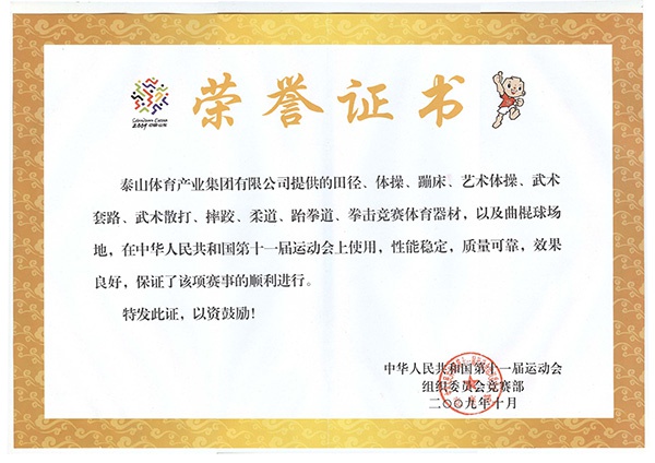 2009年第十一屆全運(yùn)會證書
