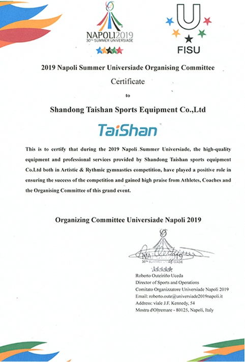 2019年那不勒斯大學(xué)生運(yùn)動會榮譽(yù)證書
