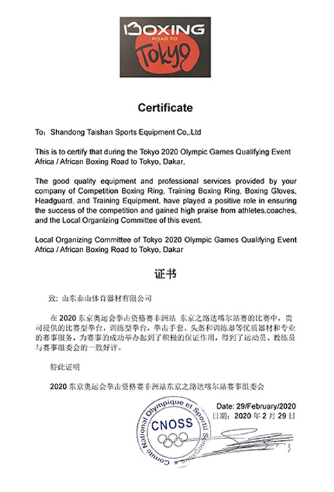 2020年東京奧運(yùn)會拳擊資格賽非洲站證書